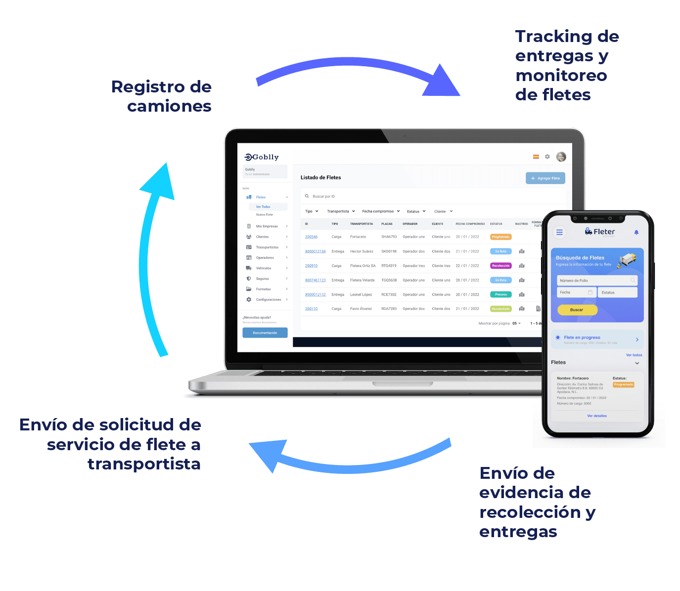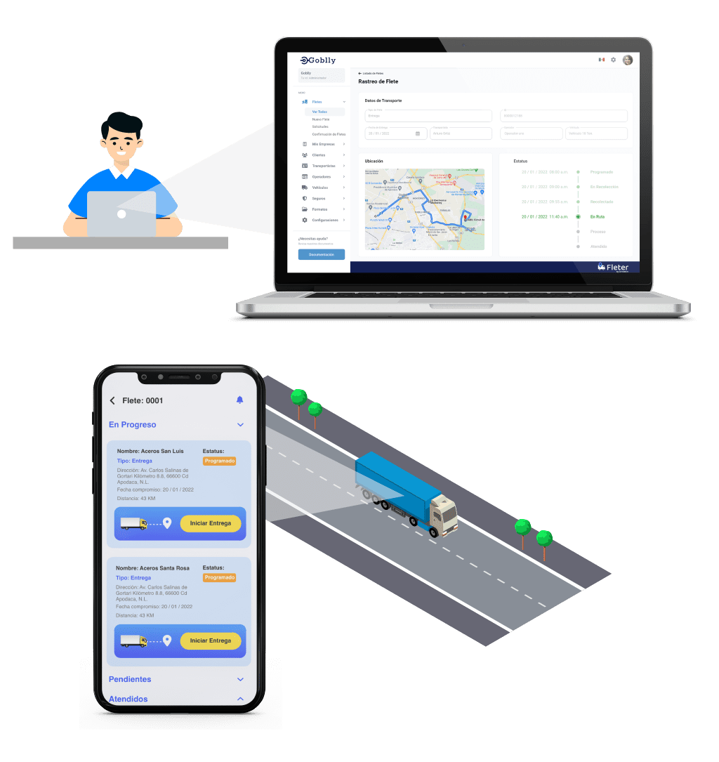 - Ayuda a gestionar la comunicación entre la solicitud del servicio del flete y la disponibilidad del transportista.